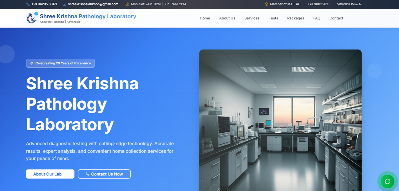 Web platform for pathology services with test booking, online reports, lab information, and secure patient data access.